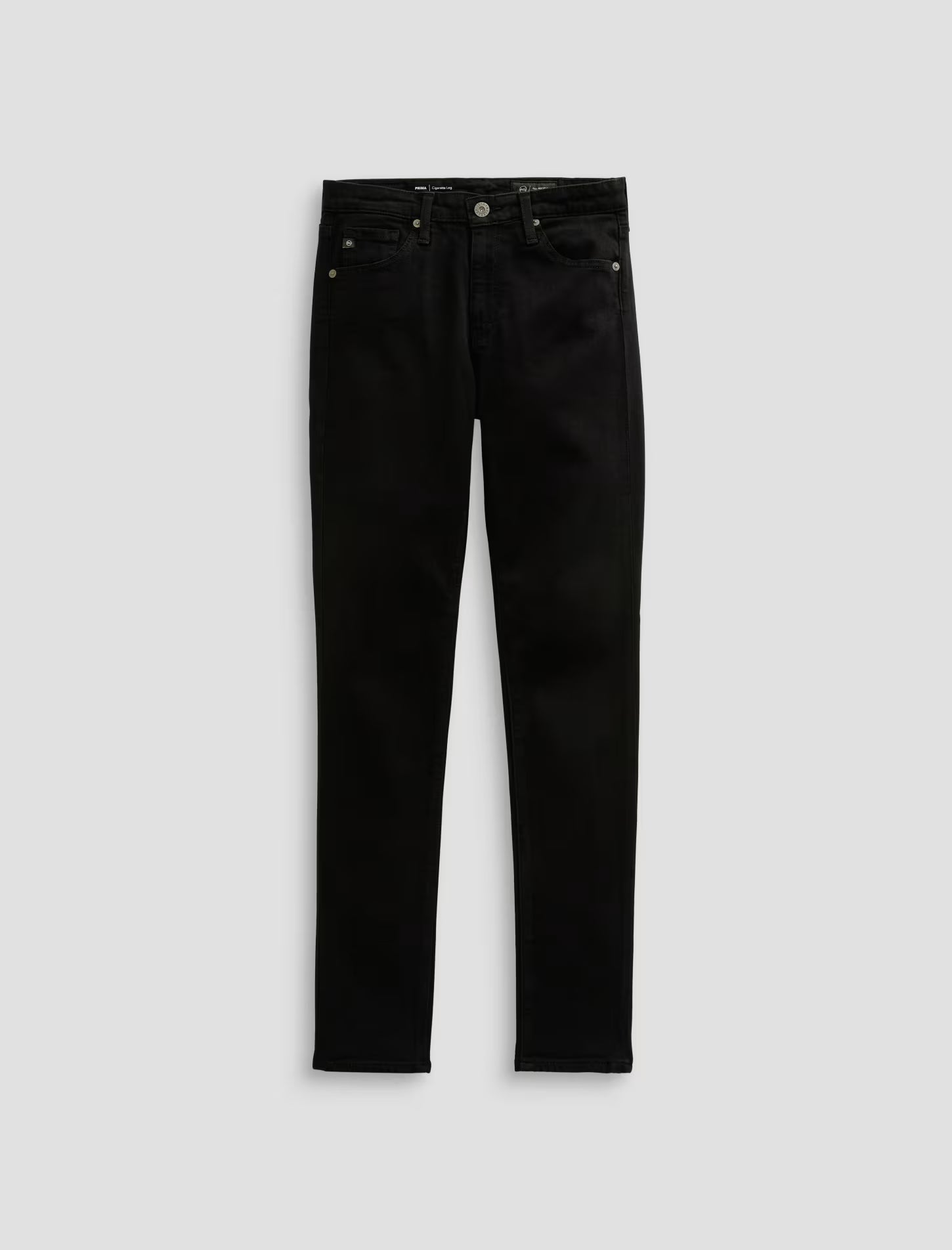 Prima is a mid-rise cigarette jean featuring a saturated black shade and tonal details. This jean has a fitted silhouette through the hips and slight tapering at the leg, designed in 10 oz. Superior Stretch Black Denim.