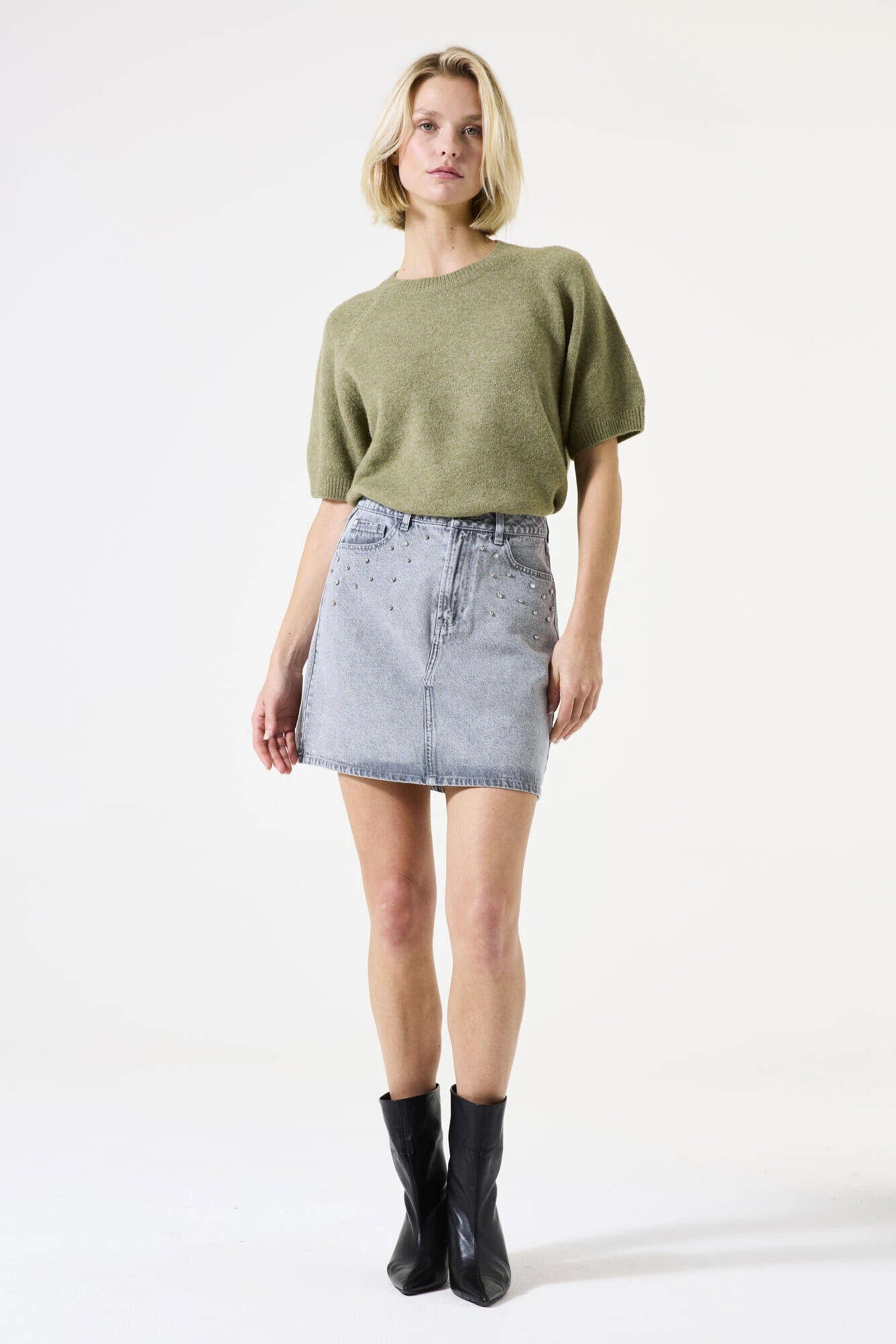 Elegant sweater tee in a cozy knit with a round neck. This item is made of 68% acrylic, 25% polyester, 5% wool, and 2% elastane.