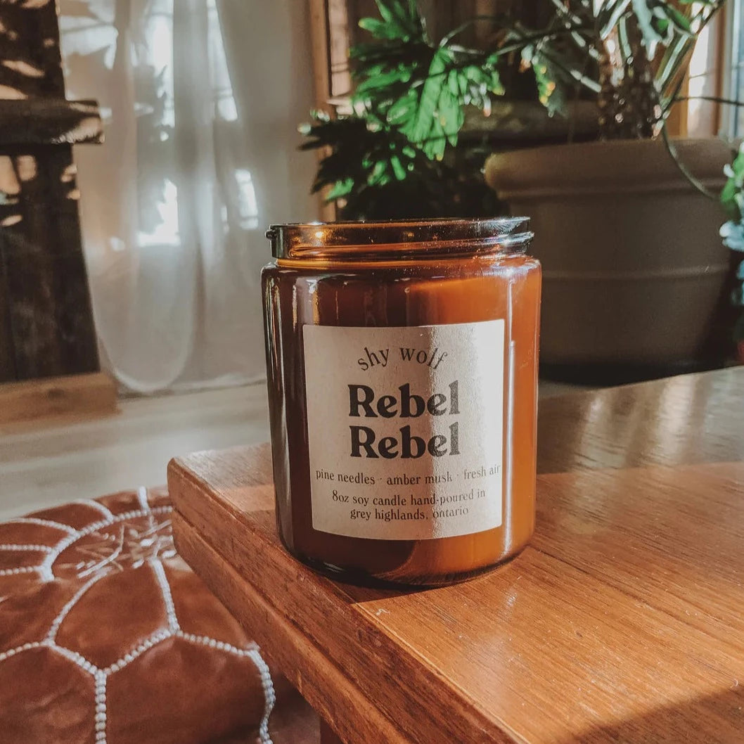 Shy Wolf's 8 oz candles are made from North American soy wax and burn for 40-50 hours. Hand-poured in Grey Highlands with fine, phthalate-free fragrances.