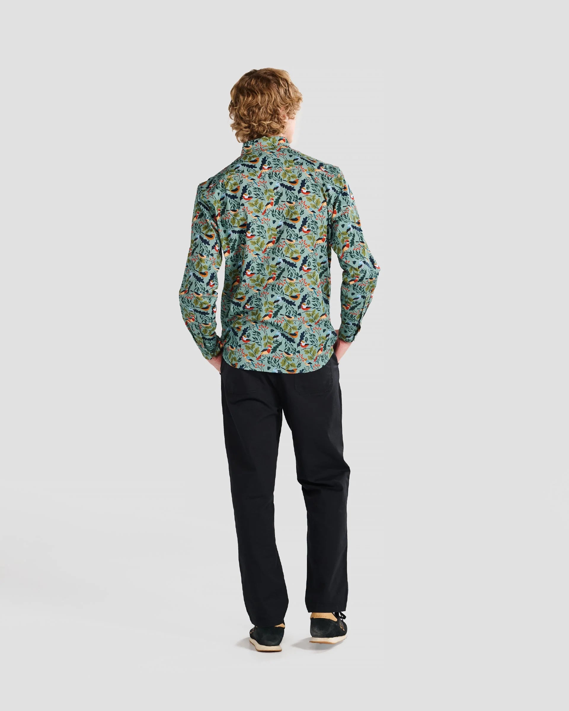 This woven true-fit shirt is made in limited quantities to reduce Poplin's environmental impact and to increase exclusivity for customers. It features a button-down collar, button front, long sleeves, and a curved hem. Pre-shrunk for convenience, it remains smooth after machine washing ensuring the perfect fit and an incredible feel from the moment you put it on. The hand-drawn winter birds print is art to wear and adds a touch of casual elegance to your wardrobe.